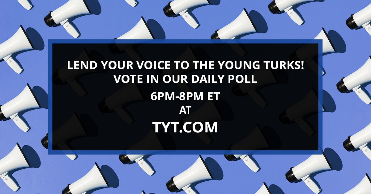 TYT Daily PollHead over to www.TYT.com and vote there too to lend your voice to the Young Turks!TYT Network I The Young TurksAug 05, 20254ShareLoading...SharePreviousNext